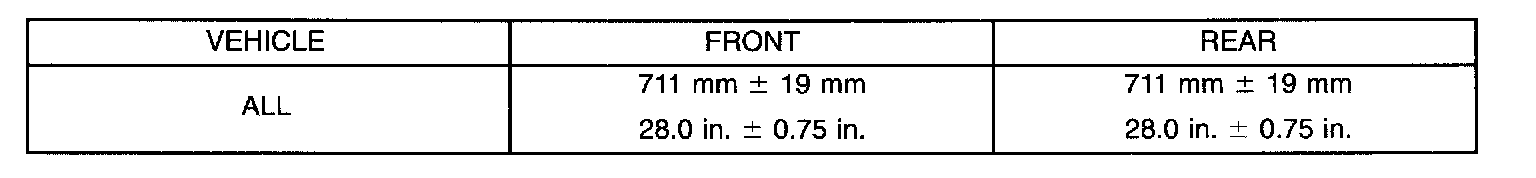 3. Compare the measurements to specifications listed in the following CURB HEIGHT SPECIFICATIONS chart.
