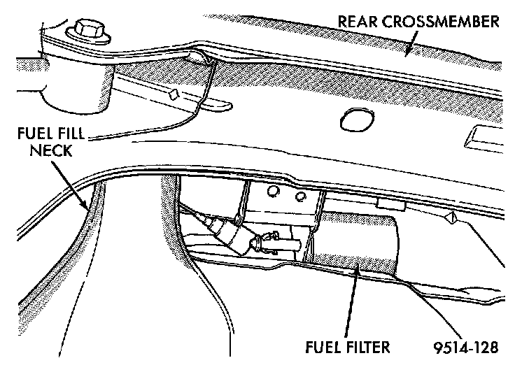 The fuel filter mounts to the frame above the rear of the fuel tank. The inlet and outlet tubes are permanently attached to the filter.REMOVAL