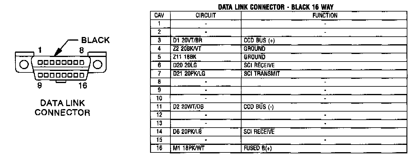 Data Link Connector - Black 16 Way: