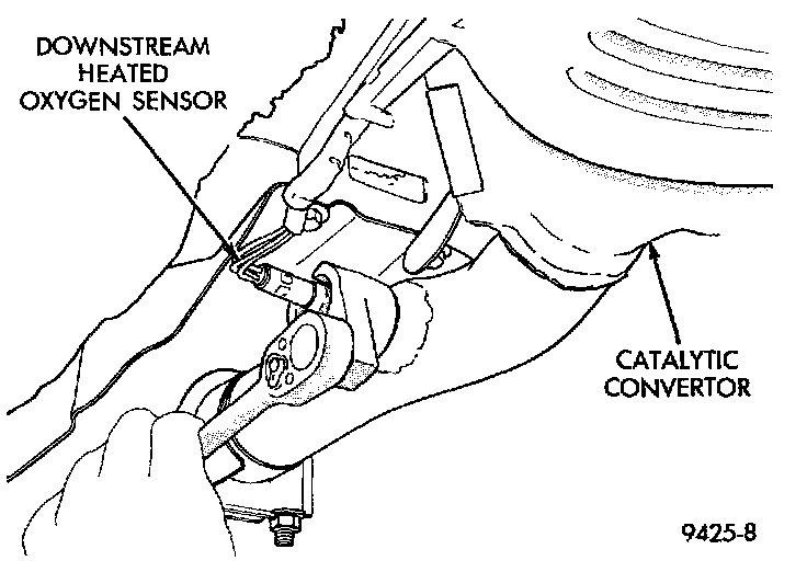 The downstream heated oxygen sensor threads into the exhaust pipe behind the catalytic converter.REMOVAL