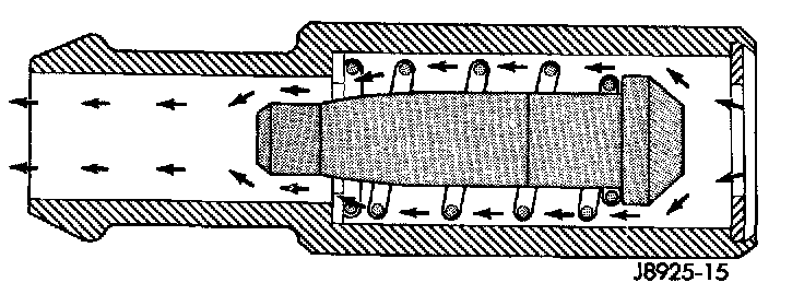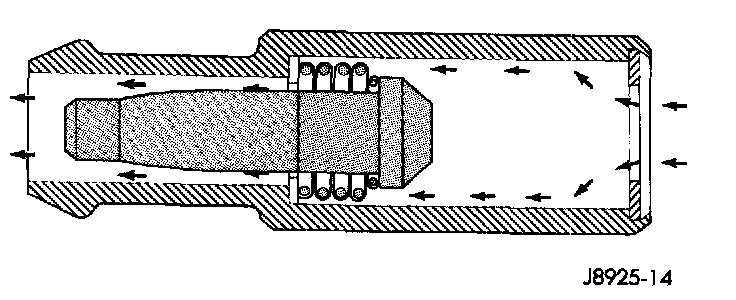 When the engine is not operating or during an engine backfire, the spring forces the plunger back against the seat. This prevents vapors from flowing through the valve.