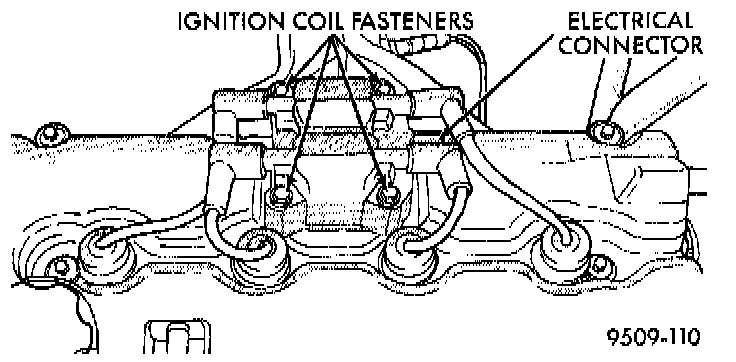 2. Transfer spark plug cables to new coil pack. The coil pack towers are numbered with the cylinder identification. Be sure the ignition cables snap onto the towers.