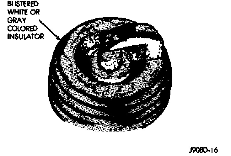SPARK PLUG CONDITIONRemove the spark plugs and examine them for burned electrodes and fouled, cracked or broken porcelain insulators. Keep plugs arranged in the order in which they were removed from the engine. An isolated plug displaying an abnormal condition indicates that a problem exists in the corresponding cylinder.