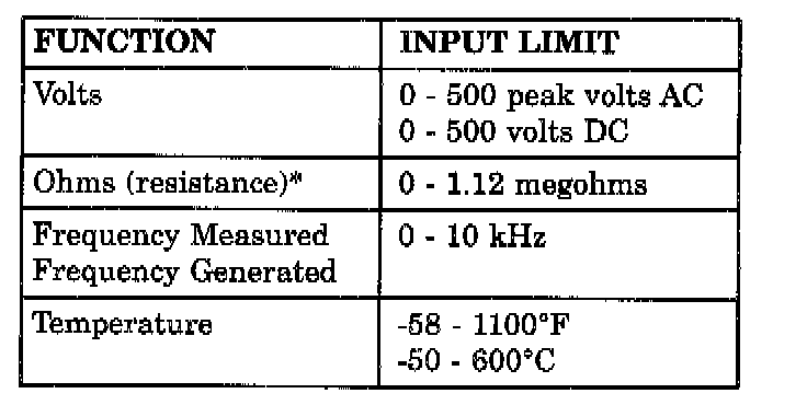 WARNING: EXCEEDING THE LIMITS OF THE DRB's MULTIMETER IS DANGEROUS. IT CAN EXPOSE YOU TO SERIOUS OR POSSIBLY FATAL INJURY. CAREFULLY READ AND UNDERSTAND THE CAUTIONS AND THE SPECIFICATION LIMITS.