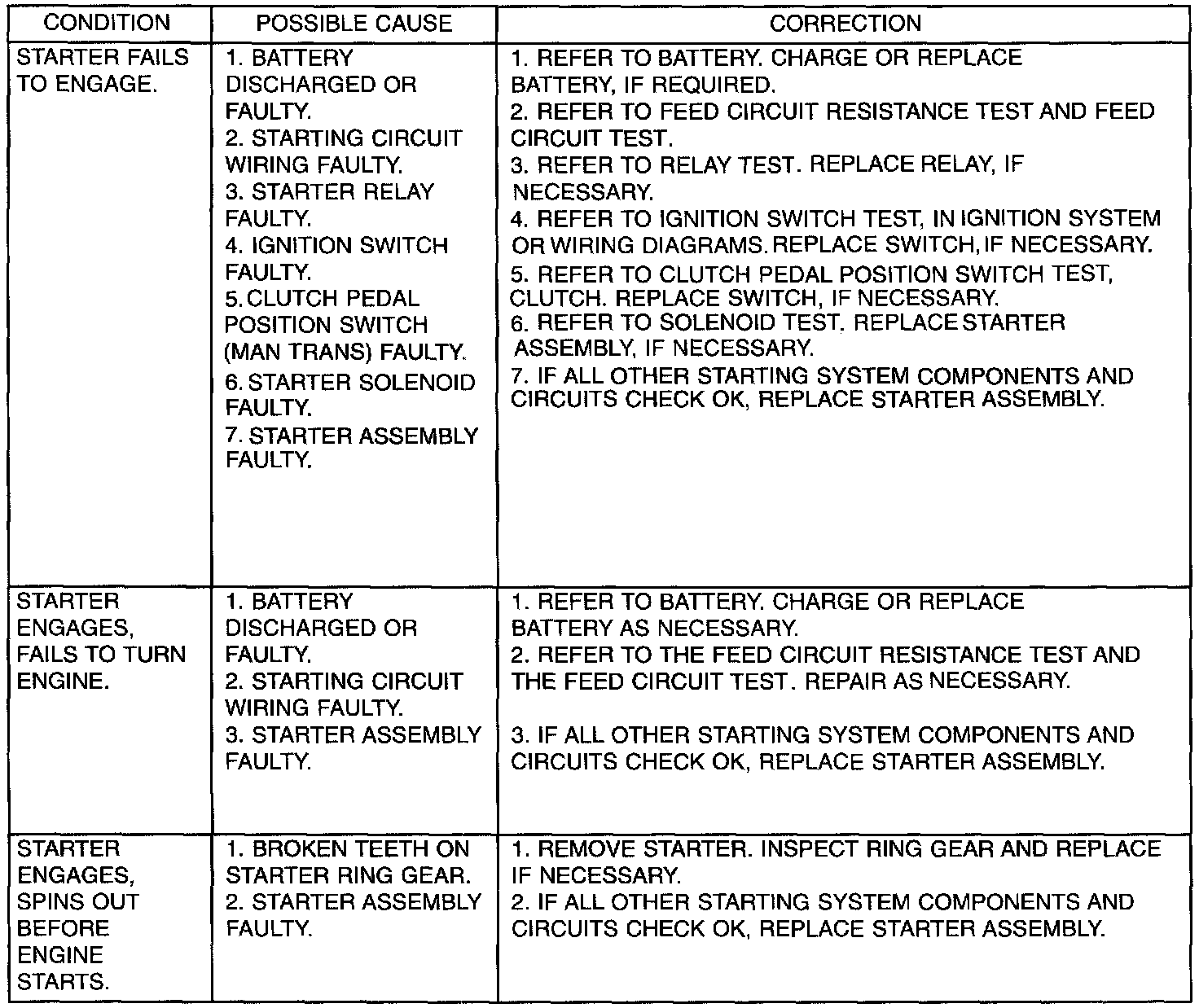 Starting System Diagnostic Chart: