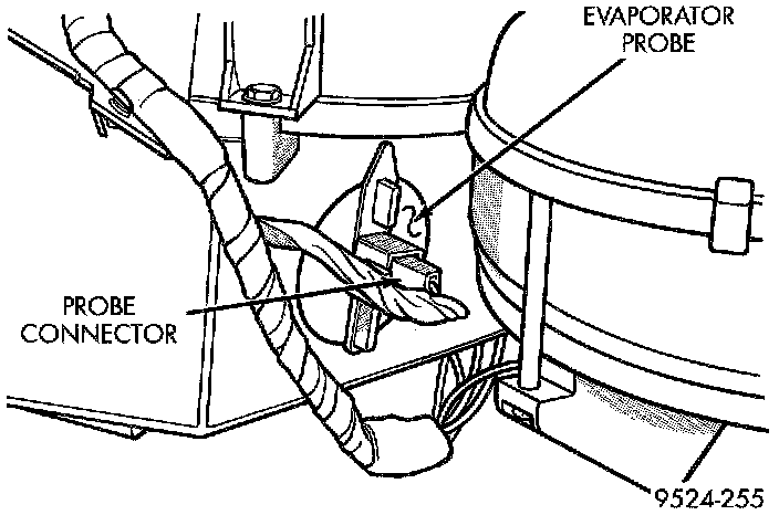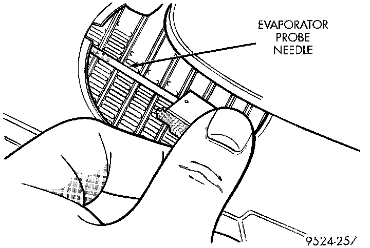 1. Install new probe into the evaporator. The new probe must not go into the same hole (in the evaporator core) that the old probe was removed. The evaporator is manufactured with three holes for probe insertion. Insert the probe in the uppermost hole.