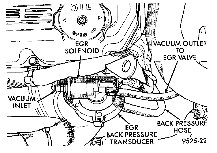 The electric EGR transducer contains an electrically operated solenoid and a back-pressure transducer. The Powertrain Control Module (PCM) operates the solenoid. The PCM determines when to energize the solenoid. Exhaust system back-pressure controls the transducer.