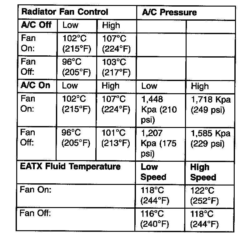 ^ When air conditioning system pressure reaches 210 psi, fan will operate.