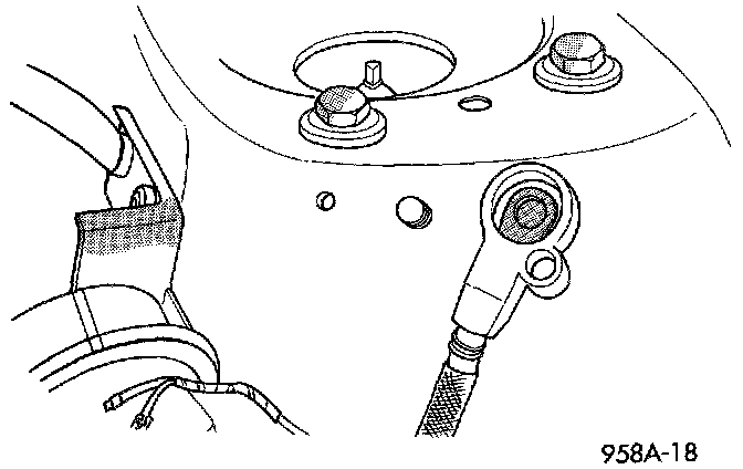 1. Disconnect battery negative cable from remote negative terminal on shock tower.