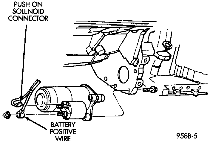 6. Remove three bolts attaching starter to transmission housing and remove starter from vehicle.