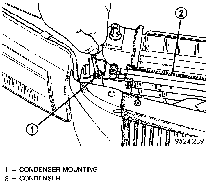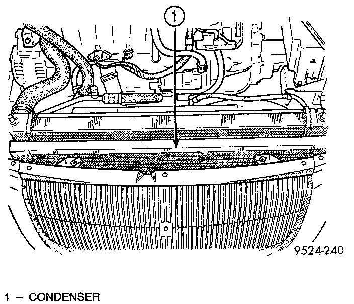 The condenser is located between the radiator and the front bumper. The condenser can be serviced without having to drain the cooling system or remove the radiator.WARNING: