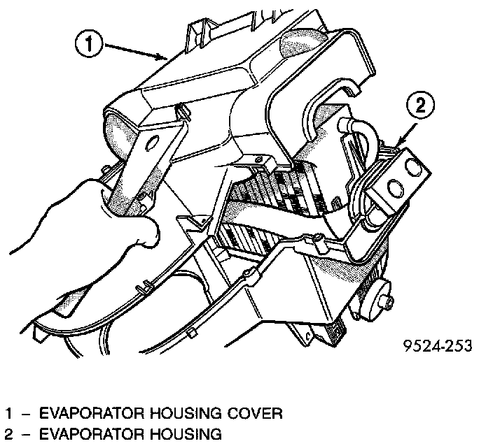5. Remove clips retaining evaporator housing to heater/distribution housing.