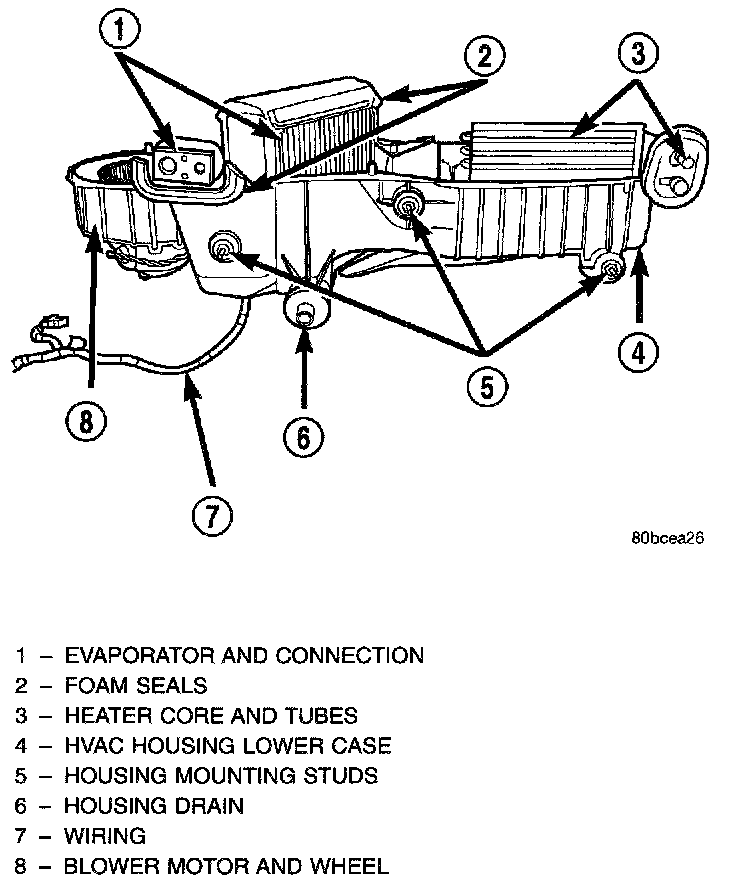 The HVAC housing must be removed from the vehicle before beginning with this procedure. Removal and Replacement