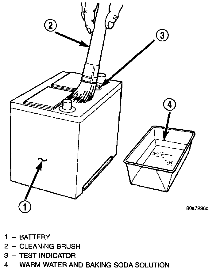 CAUTION: Do not allow baking soda solution to enter vent holes, as damage to battery can result.1. Clean top of battery with a solution of warm water and baking soda.