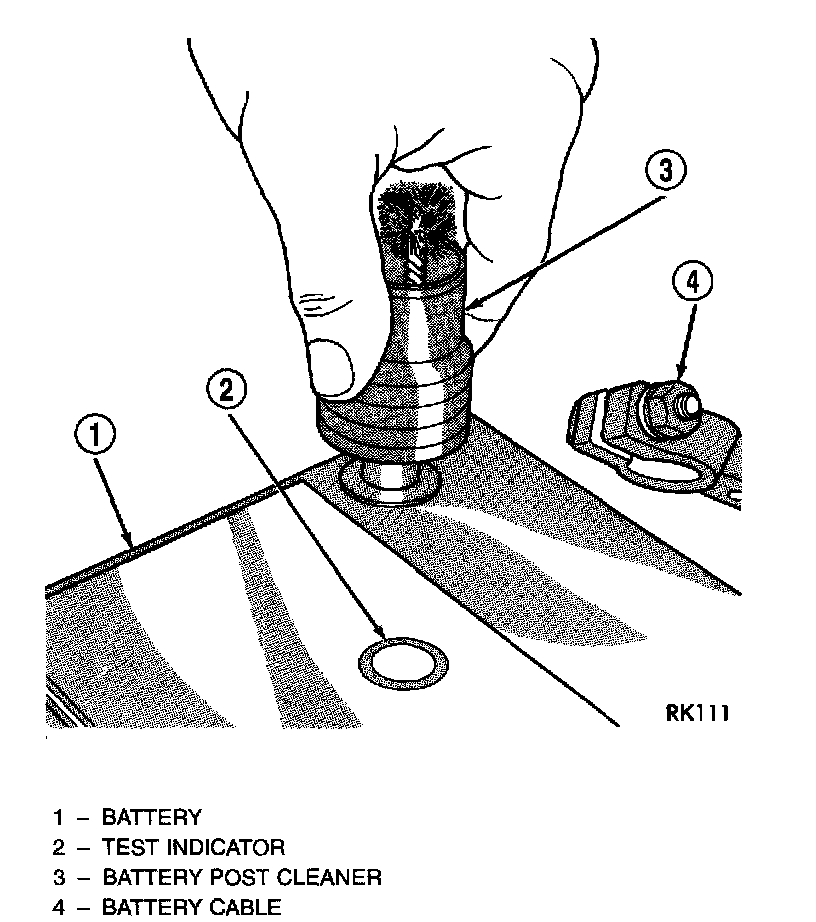 4. Inspect battery case and cover for cracks, leakage or damaged hold down ledge. If battery is damaged replace it.