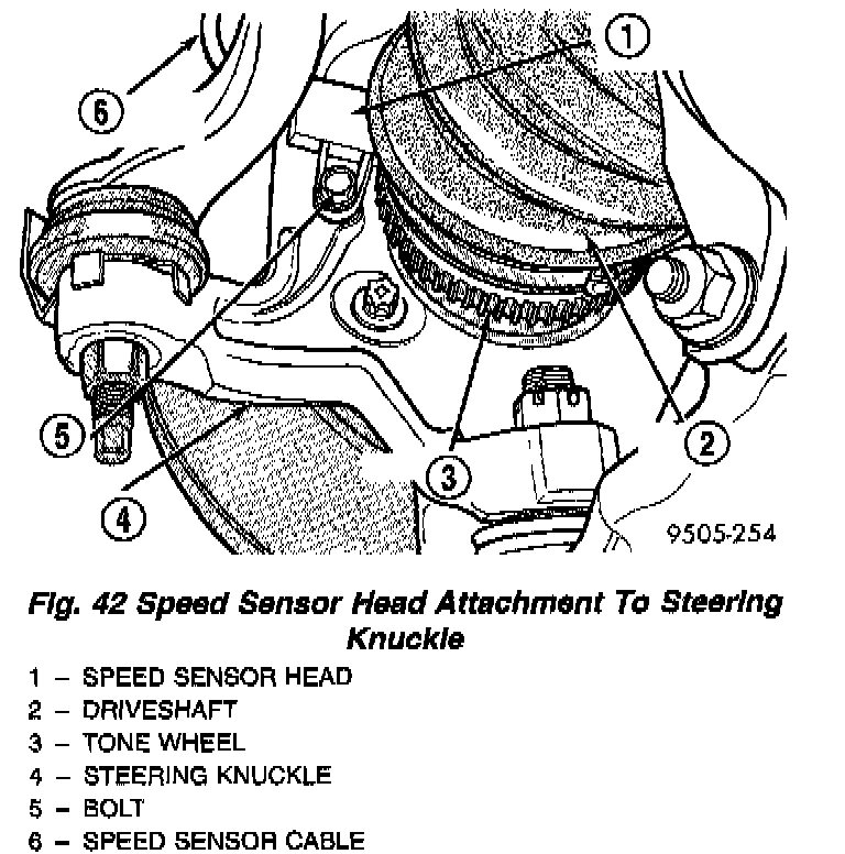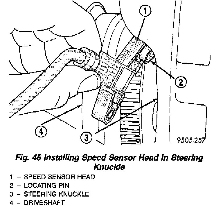 5. Remove bolt attaching speed sensor to steering knuckle. Then remove speed sensor head from steering knuckle