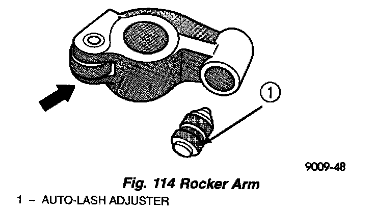 Inspect the rocker arm for scoring, wear of the roller or damage to the rocker arm (Fig. 114). Replace as necessary.