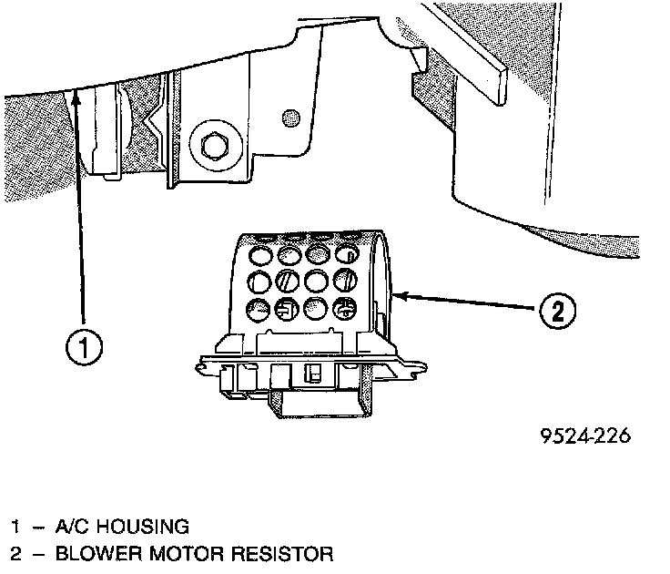 The blower motor resistor is located on the lower right side of the heater housing.REMOVAL