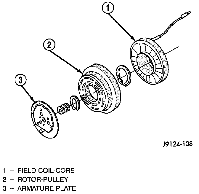 CAUTION: If snap rings on field coil or pulley assembly are not fully seated, they will vibrate out. A clutch failure and possible severe damage to the compressor could result.