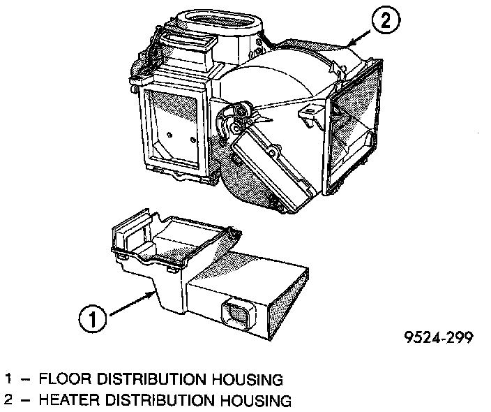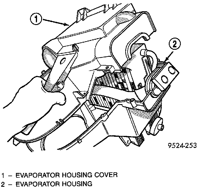 17. Remove clips retaining evaporator housing to heater/distribution housing.