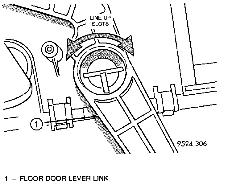 29. Turn floor door lever link until it aligns with slots cut into it. Remove floor door lever link.