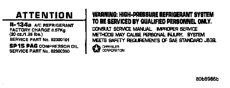 - R-134a SERVICE EQUIPMENT OR VEHICLE A/C SYSTEM SHOULD NOT BE PRESSURE TESTED OR LEAK TESTED WITH COMPRESSED AIR. SOME MIXTURES OF AIR and R-134a HAVE BEEN SHOWN TO BE COMBUSTIBLE AT ELEVATED PRESSURES. THESE MIXTURES ARE POTENTIALLY DANGEROUS AND MAY RESULT IN FIRE OR EXPLOSION CAUSING INJURY OR PROPERTY DAMAGE.