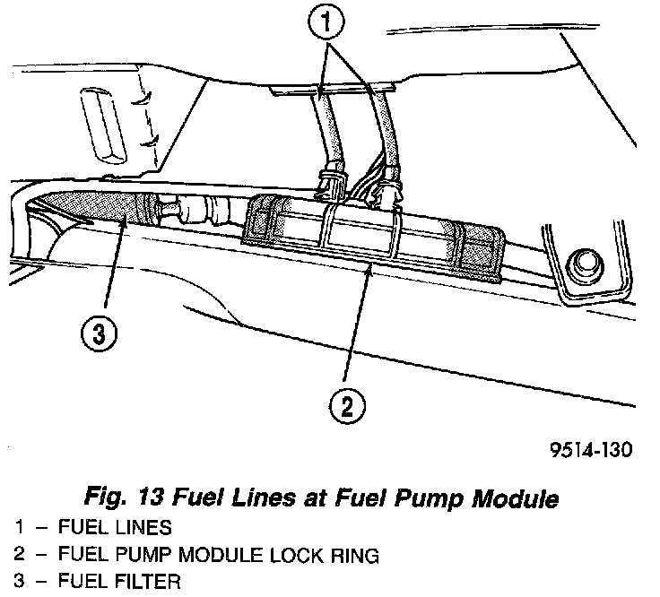 6. Disconnect fuel lines from fuel pump module (Fig. 13). These are quick connect fittings. Refer to Quick Connect Fittings.