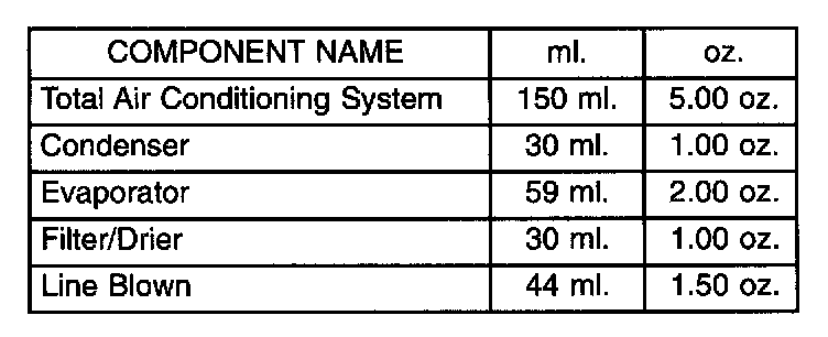 A/C Component Refrigerant Oil Capacities:
