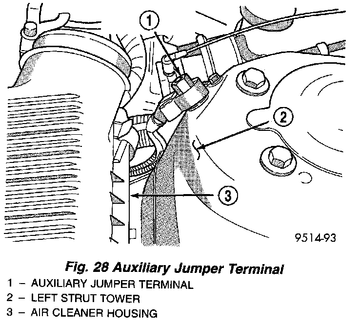 1. Disconnect negative cable from auxiliary jumper terminal.