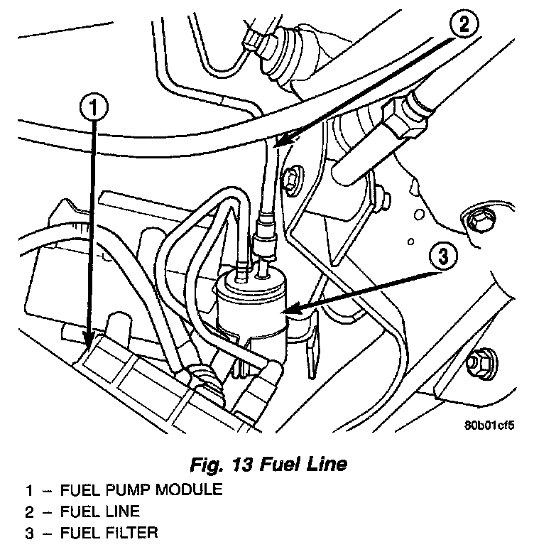 12. Fill fuel tank. Use the DRB scan tool to pressurize the fuel system. Check for leaks.