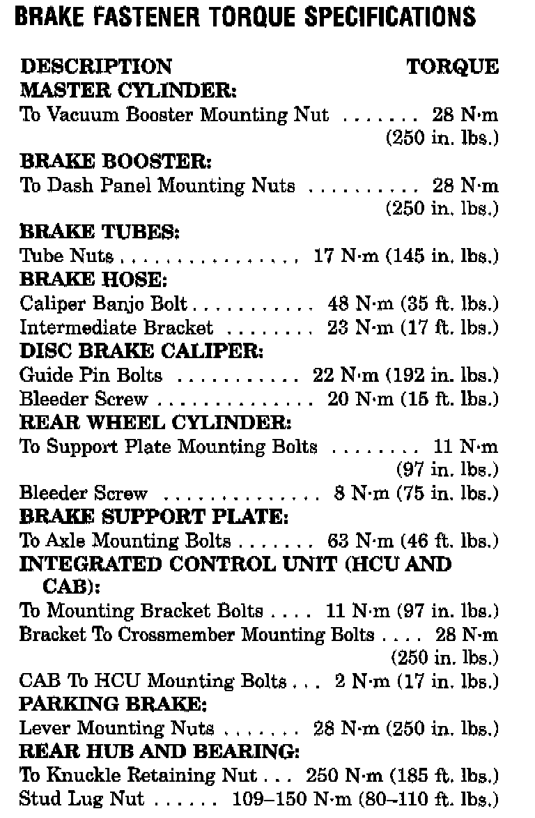 Antilock Brake System Torque Specifications