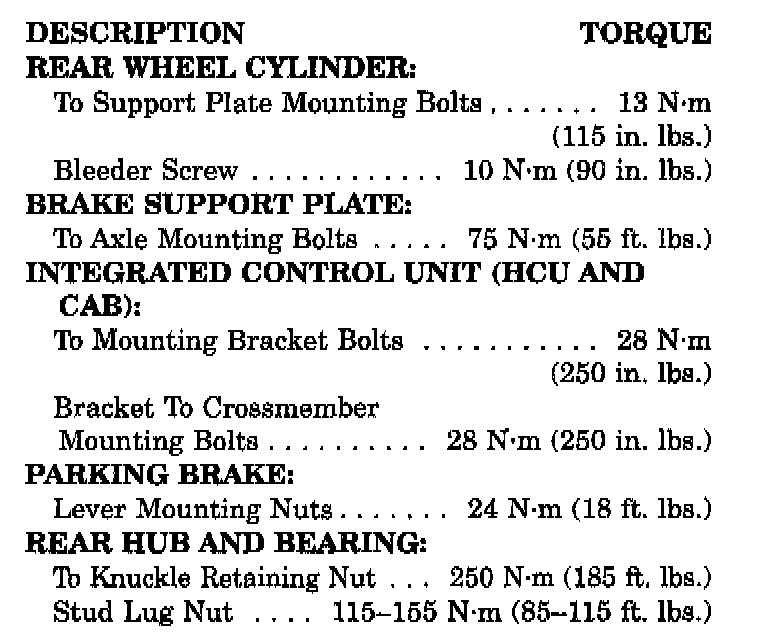 Brake Fastener Torque Specifications