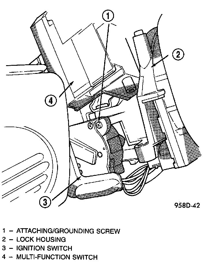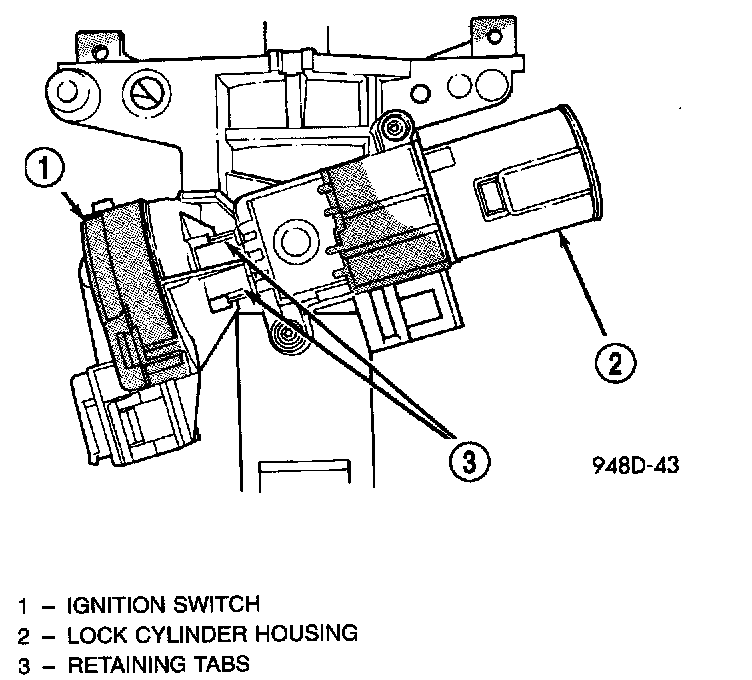 15. Depress retaining tabs and pull ignition switch from steering column.