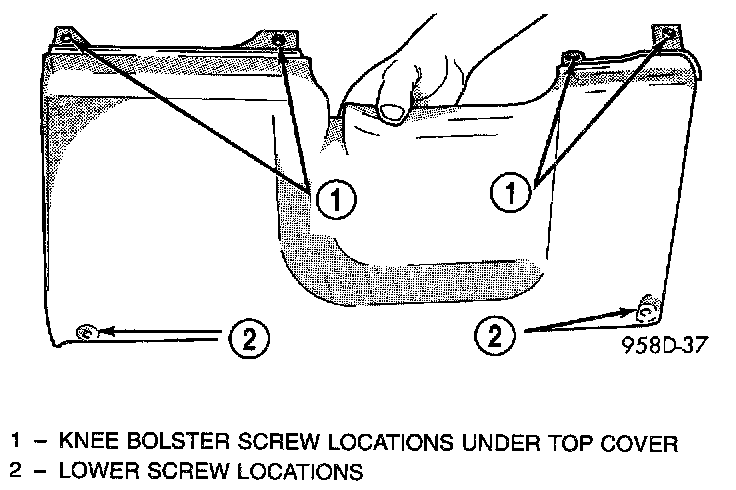 5. Pull instrument panel top cover up enough to gain access to knee bolster screws.