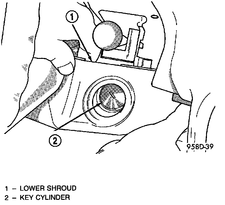 8. Pull lower shroud to clear ignition cylinder and key release, if equipped.