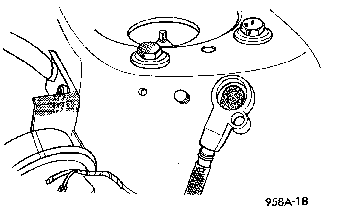 1. Disconnect battery negative cable from remote negative terminal on shock tower.