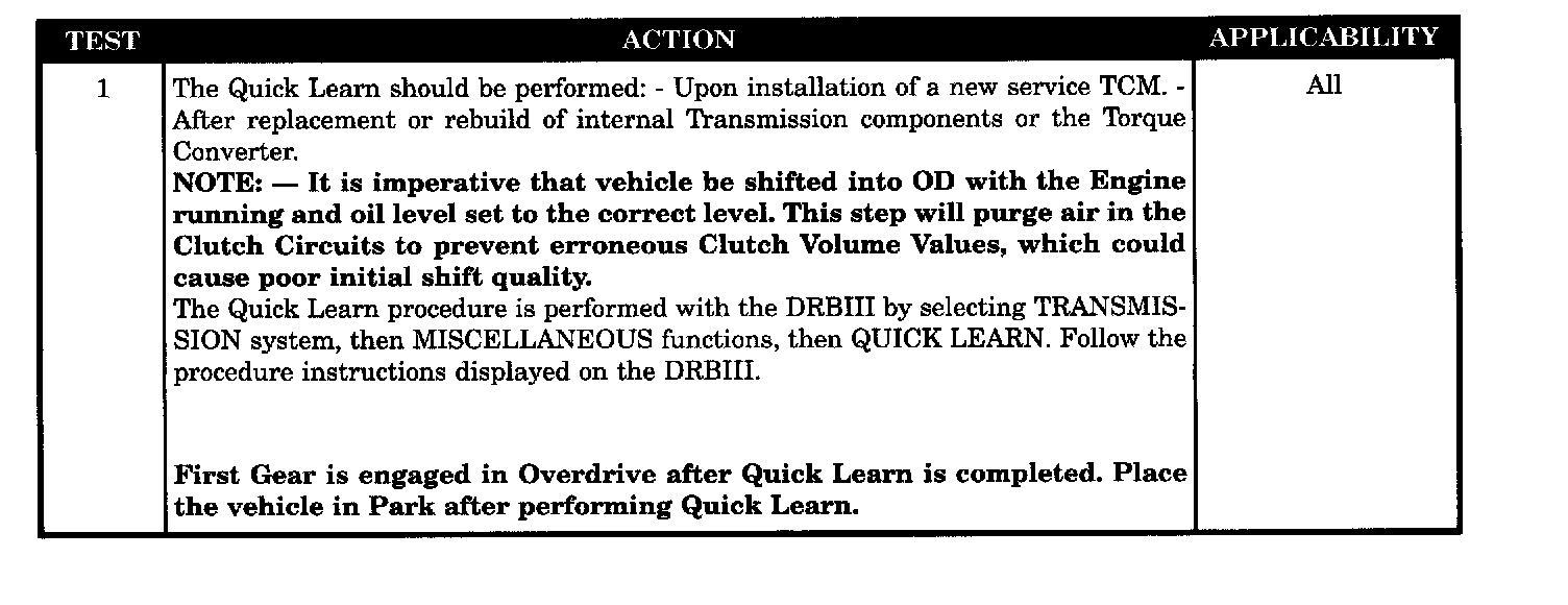 * QUICK LEARN PROCEDURE