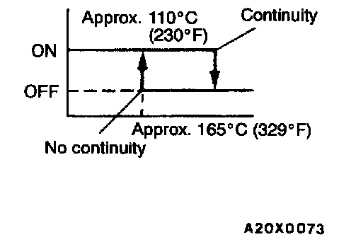 No continuity (OFF) = Approx. 165°C (329°F) or more [until the temperature drops to approx. 110°C (230°F) when OFF]