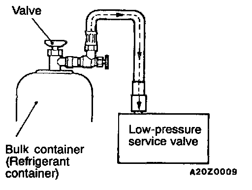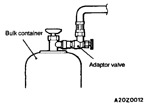 CAUTION: Always keep the bulk container upright. If it is turned upside down, the compressor may be damaged by liquid refrigerant.