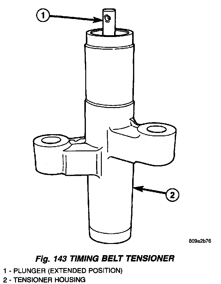 1. Inspect hydraulic tensioner for fluid loss around the plunger seal (Fig. 143). Replace tensioner if leaking.