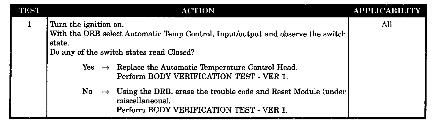 The BCM interfaces with the ATC head over the PCI Bus. If an ATC switch is held in the closed position for longer than 5 to 10 minutes, a switch failed code will be set.
