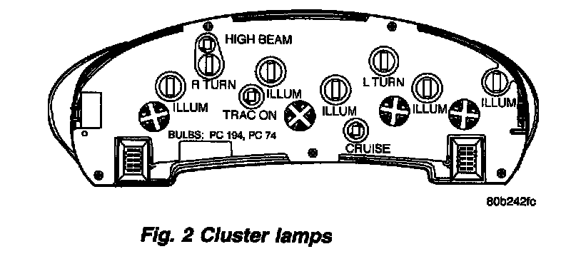 Refer to (Fig. 2) for cluster lamp locations.