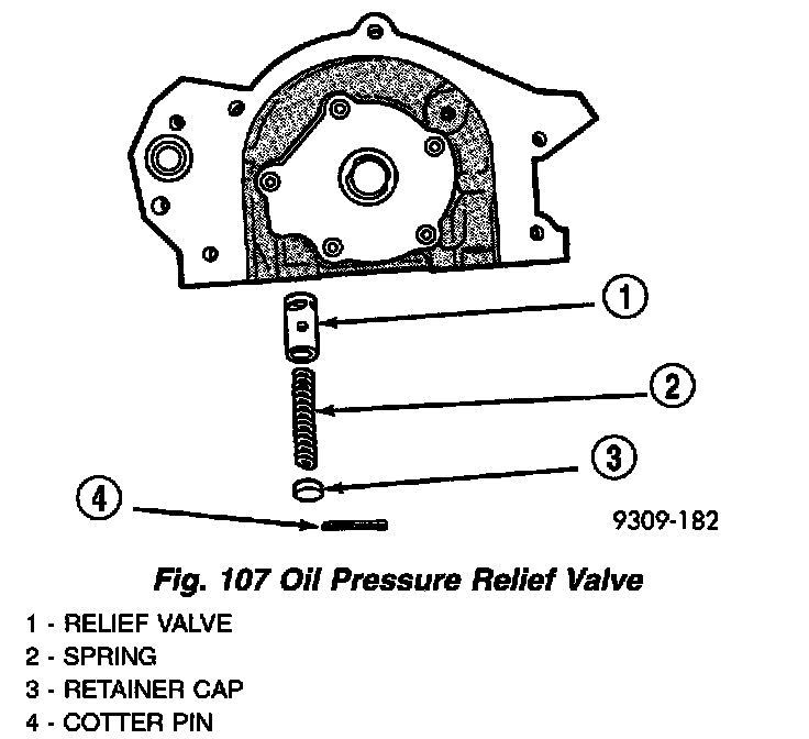 CAUTION: The pressure relief valve must be installed as shown in (Fig. 107), or engine damage may occur.