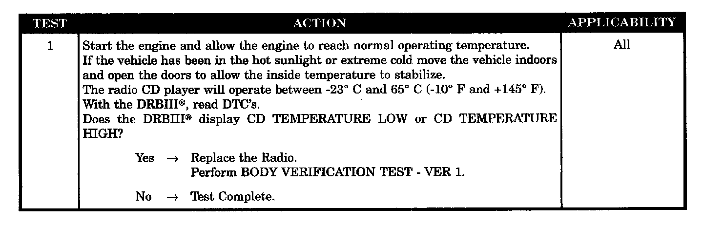 The code will set if the temperature inside the radio CD player is above +65 °C (+145 °F).