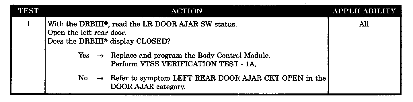 VTSS DOES NOT TRIP FROM LEFT REAR DOOR