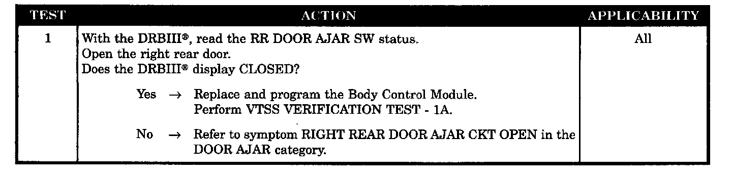 VTSS DOES NOT TRIP FROM RIGHT REAR DOOR