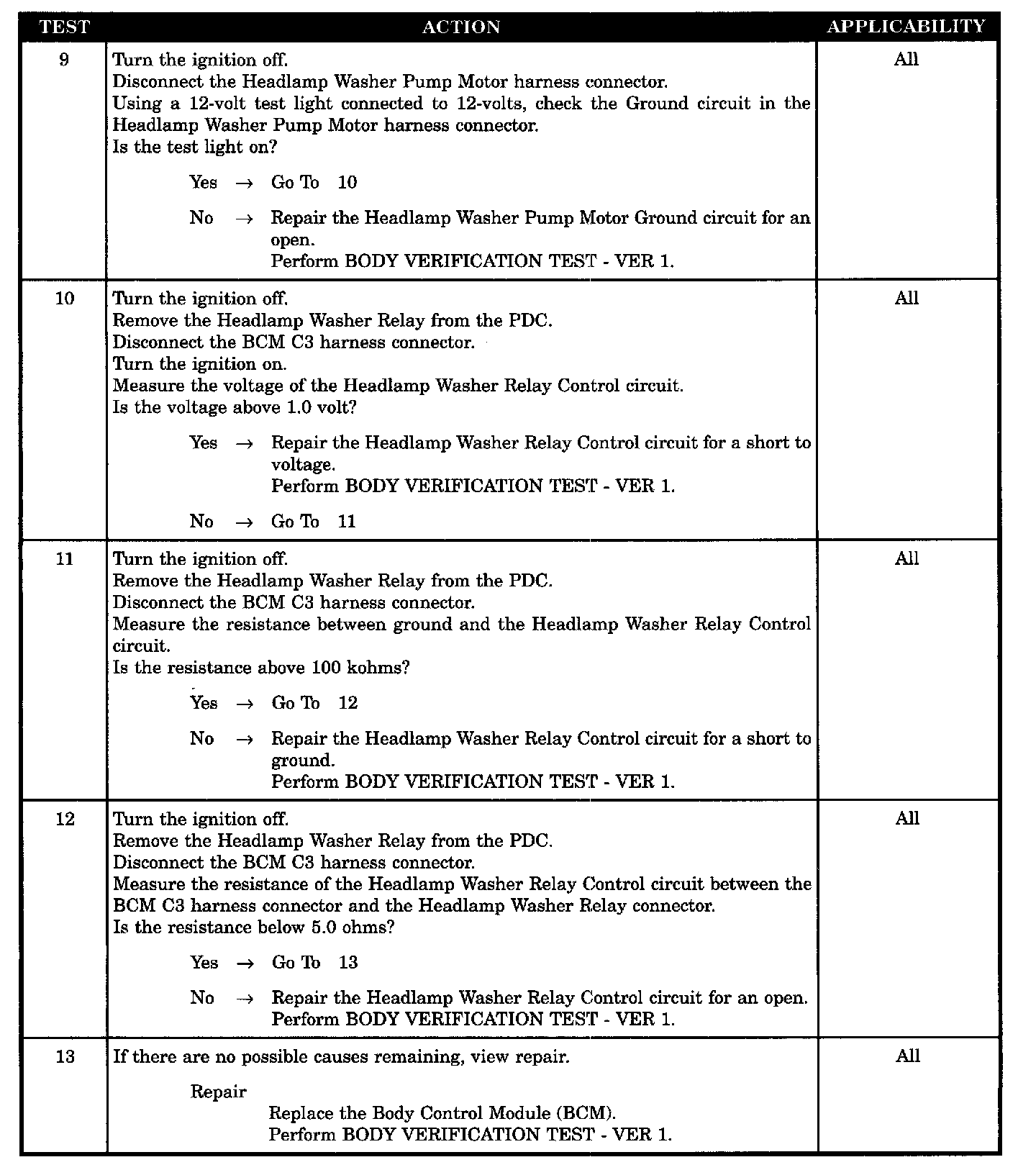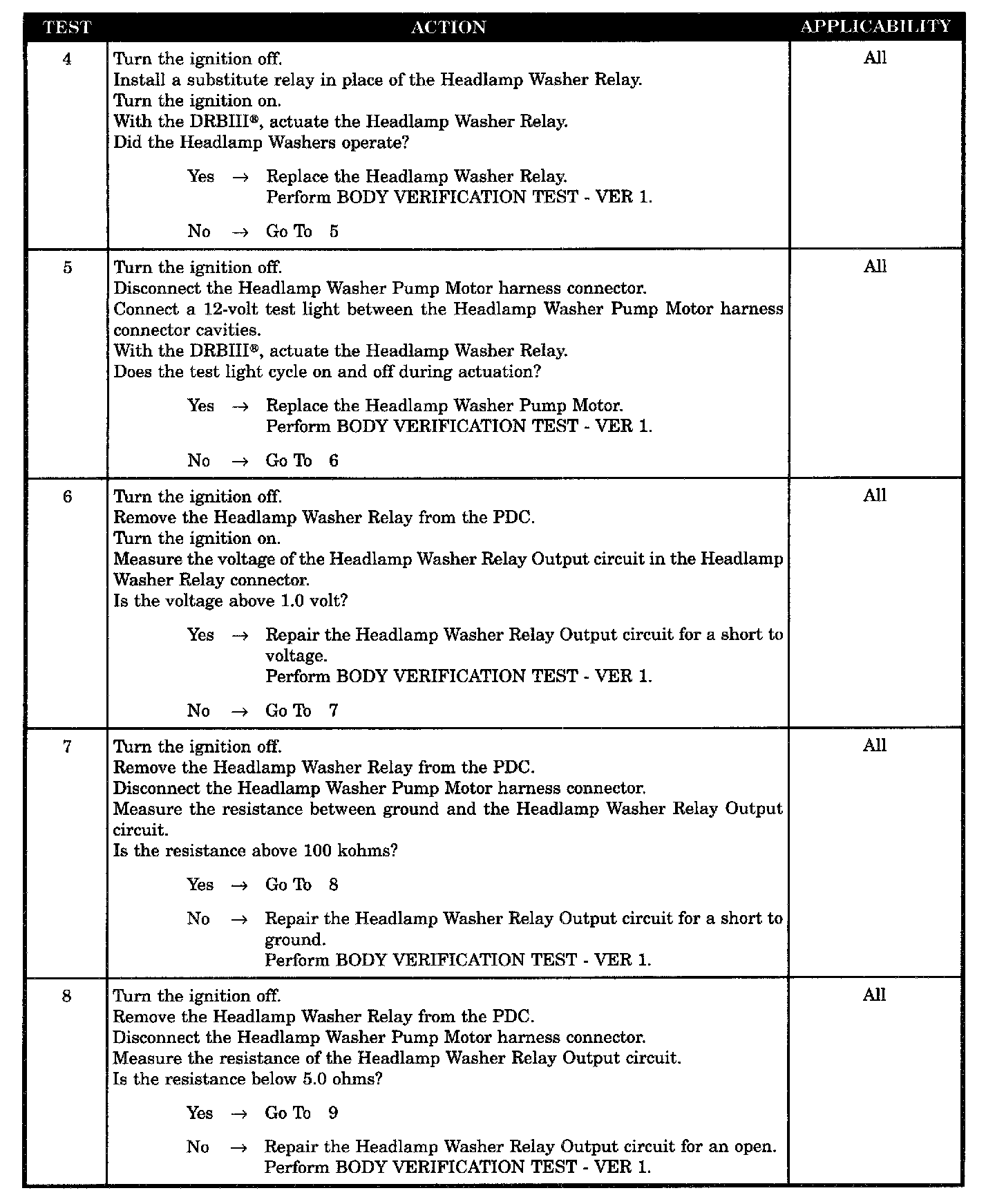 - Headlamp washer relay control circuit shorted to ground