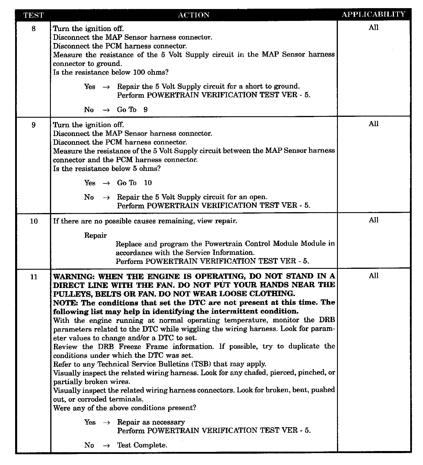 The PCM senses the voltage from the MAP sensor to be less than 2.196 volts but above 0.0392 volts for 300 milliseconds.
