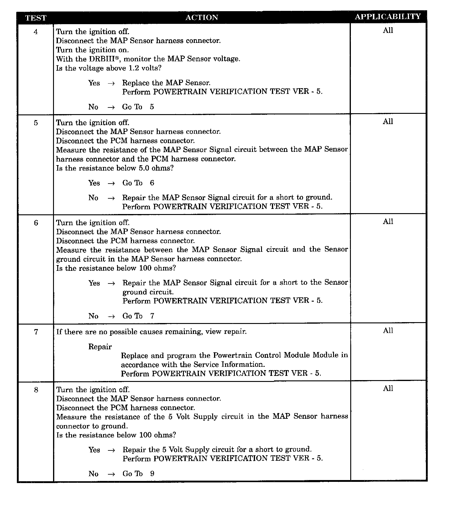 - MAP sensor signal circuit shorted to ground