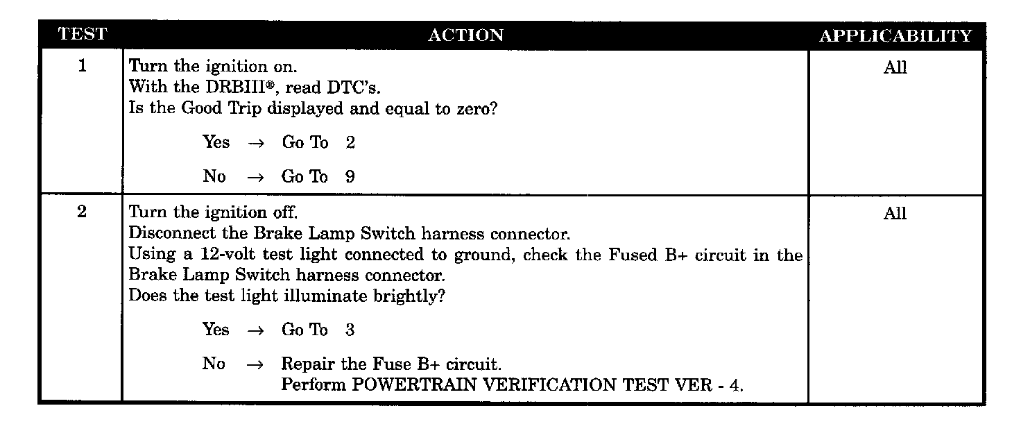 With the engine running. The PCM expects the signal to be high for 16 cycles while it monitors the brake switch signal during accel and decel modes.